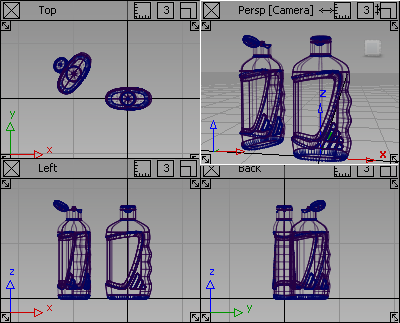 The file opens. The scene has two shower gel bottles in different positions, one with the cap open, and one with it closed.