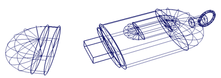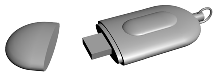 This USB memory stick was made from a cylinder with a half-sphere. They were created and aligned at the default size, and then grouped and non-proportionally scaled to create the flattened oval shape.