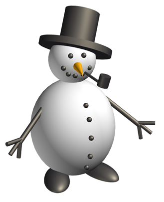 A fun exercise that gives you the opportunity to use all the primitive tools is to build a snowman. The model shown is just one variation; use your imagination to create your own character. To save time, use the Edit > Duplicate > Mirror