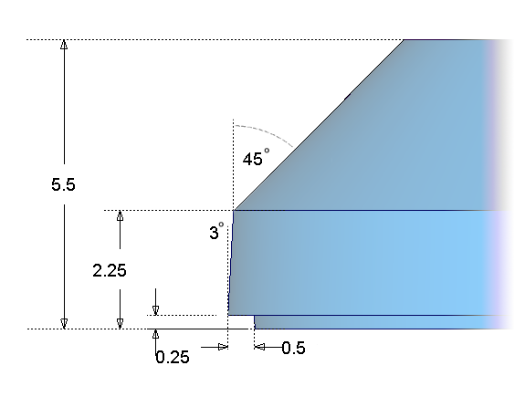 The angle of three degrees compensates for the draft angle of three degrees on the sidewalls. So the flange surfaces are built parallel to the ground plane.