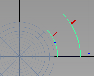 When prompted to place the end point of the arc, use the point snap ( (Windows) or (Mac) key) again and choose the keypoint on the large circle.