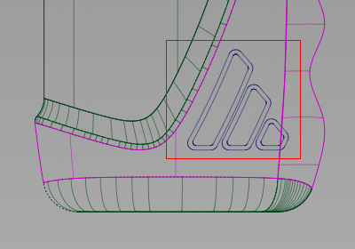 - Click Go. You are prompted to select the curves to project. As there are many curves in the logo detail, drag a selection box over all the curves.