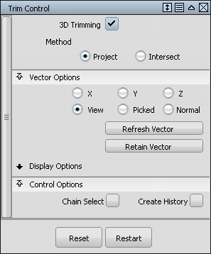 Shift select to add or remove surfaces or select trimming curves or click or box select trim regions.