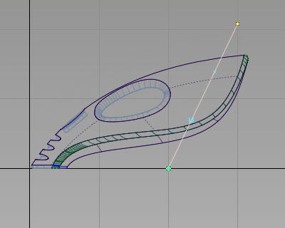 . Keep the mouse button held down and move the edit point until the curve is roughly at the same angle as the back of the vacuum.