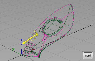 The surface is selected and highlighted in yellow, and a Build button appears in the bottom right corner of the view.