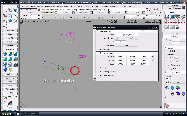 Then, set your pivot location for the first line to the end of the second. This will ensure that when we animate our first line, it will circumscribe a 60 mm circle as it move along the X axis creating the helix.