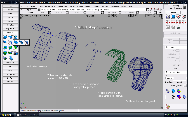 In this segment of the series we've looked at how to use the Animated Sweep tool to create complex twisting geometry, use the align tool to transform geometry from one 'pose' to another and how surfaces that were modeled with Natural Surfacing techniques can merge with other surfaces to complete a product.
