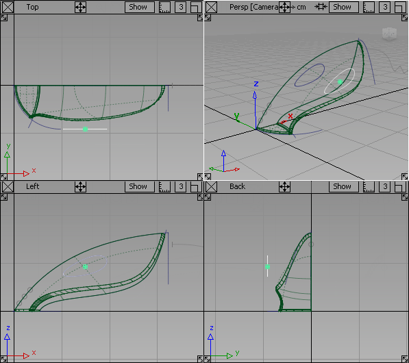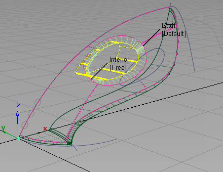 to adjust the position of the curve. Because the skin surface has construction history, it is rebuilt to the new curve position when the mouse button is released.