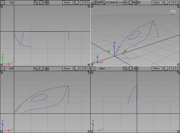 In the tutorial file, the main curves have already been created and are supplied on a layer called curves. As you do not have to create the curves for this model, you can focus on the techniques of intersecting and trimming surfaces introduced in this tutorial.
