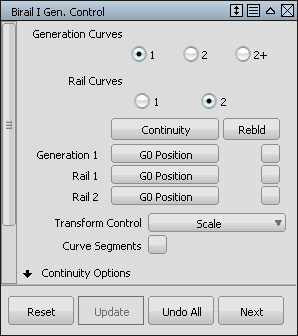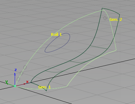 The Rail surface defaults to a birail, which has two path curves. Now change the rail surface settings to create a monorail, with only one path curve.
