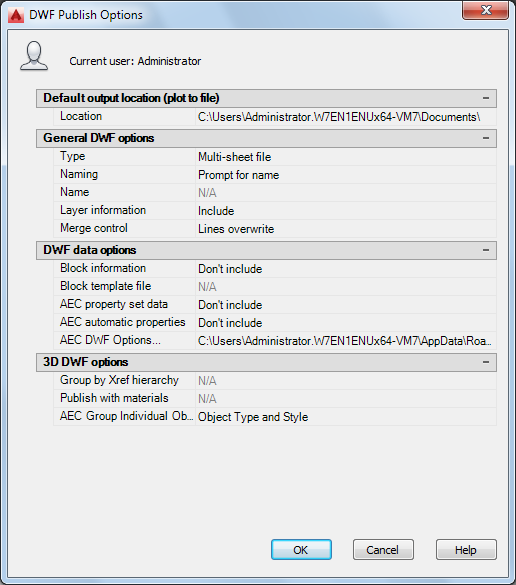 Publish. If the <3D DWF> option is not available, no valid 3D display configuration has been set for the drawing.