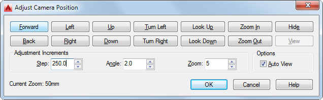 - Change the Step value: This value controls how far each click of the following buttons moves the camera: Forward, Back, Left, Right, Up, and Down.