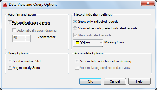 Control how linked objects are displayed in the current drawing when you select their corresponding records in the Data View window.
