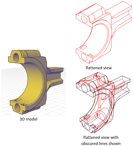With the FLATSHOT command, you can create a flattened, 2D representation of the 3D model projected onto the XY plane. The resulting objects can be inserted as a block or saved as a separate drawing. This feature is useful for creating technical illustrations.