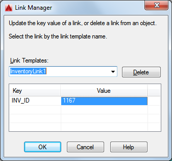 Lists all link templates that are associated with the selected graphical object. Select the link template whose link values you want to view or edit.