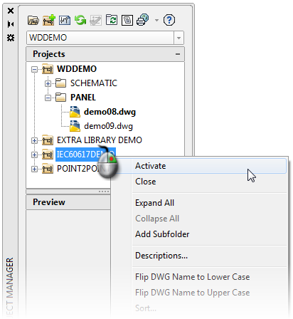 Project Manager is the tool provided to work with projects and the drawings included in a project. Find