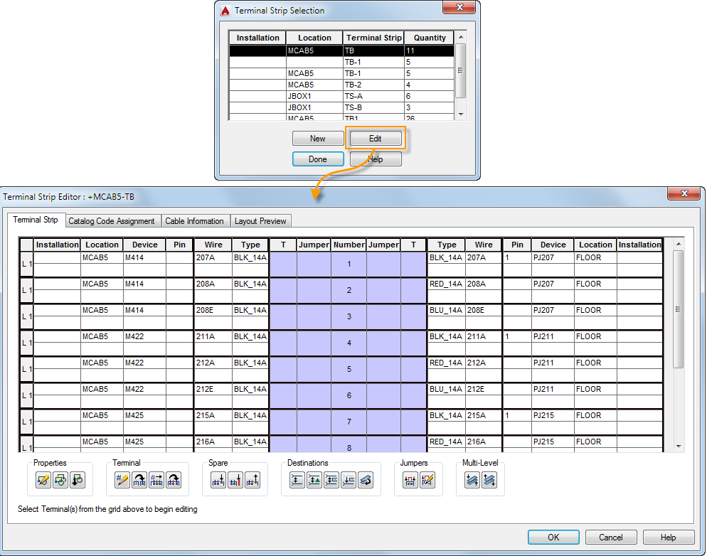 The Terminal Strip Editor lets you manage entire terminal strips rather than one terminal at a time. Find