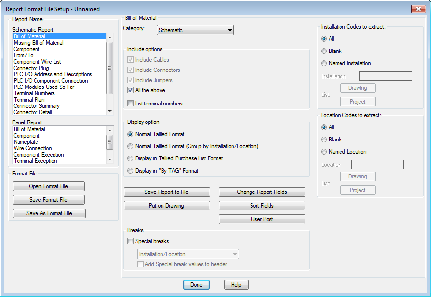 Creating a report is easy. You select whether you want to create a schematic or panel report,