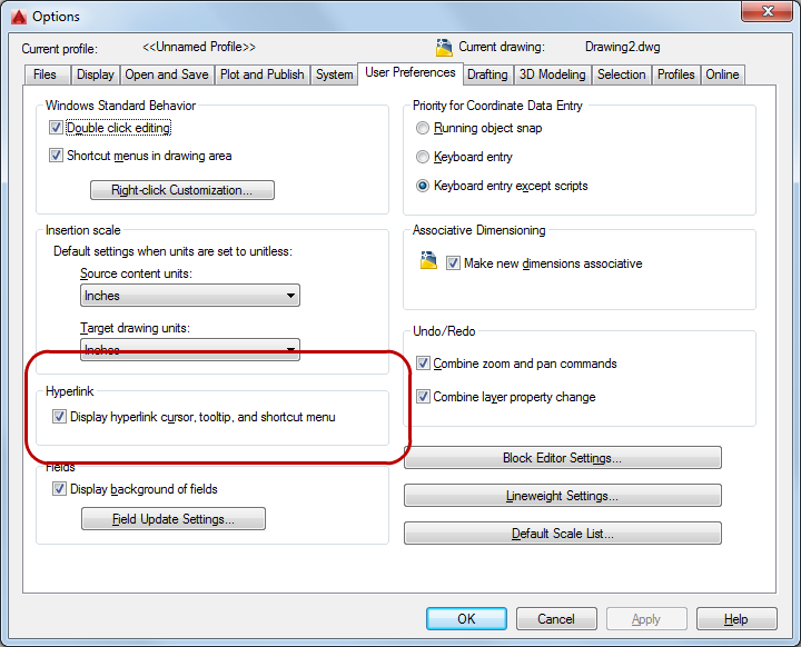 Enable the display of hyperlink information from the User Preferences tab of the Options dialog.