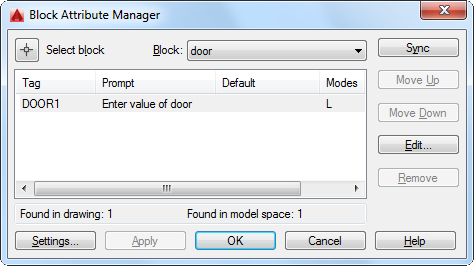 Removes the selected attribute from the block definition. If Apply Changes to Existing References is selected in the Settings dialog box before you choose Remove, the attribute is removed from all instances of the block in the current drawing. The Remove button is not available for blocks with only one attribute.