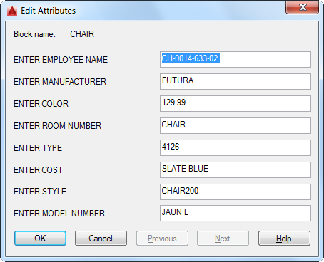 This dialog box changes the values of specific block attributes. To change attribute properties such as position, height, and style, use -ATTEDIT.