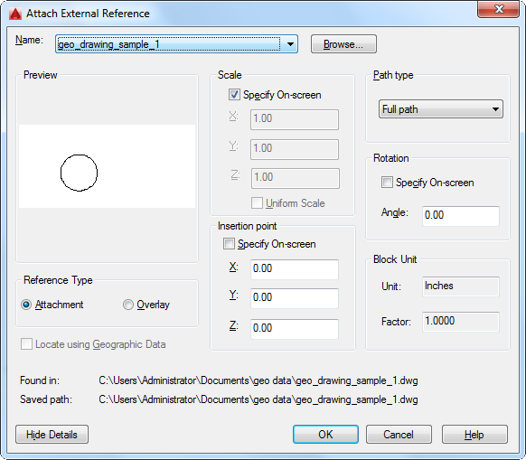 Select the full (absolute) path, the relative path to the external reference file, or No Path, the name of the external reference (the file must be located in the same folder as the current drawing file).