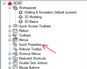 - In the Customize tab, Customizations In <file name> pane, select Quick Properties.