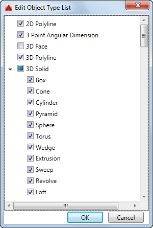- In the Edit Object Type List dialog box, click the object types you want to display properties for on the Quick Properties palette.