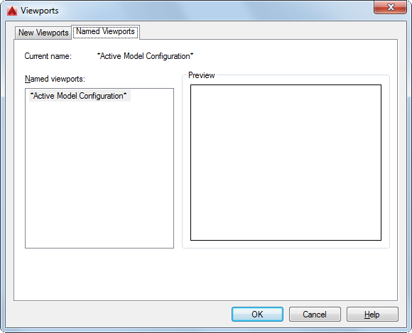 Tabs for Model space viewports: New Viewports—Model Space, Named Viewports—Model Space