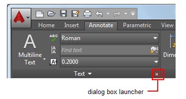 Some ribbon panels provide access to a dialog box related to that panel. To display the related dialog box, click the dialog box launcher is denoted by an arrow icon, , in the lower-right corner of the panel.