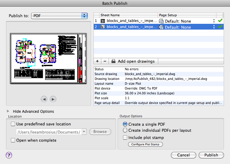 Specify the default location to save the PDF files to. When publishing to a single PDF file, you can specify the location of the file after clicking Publish as well.