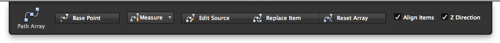 The Path Array visor is displayed when you select an associative array created with the Path option. The options on this visor can also be accessed using the ARRAYEDIT command from the Command prompt.