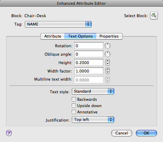 Specifies the text style for the attribute text. Default values for this text style are assigned to the text properties displayed in this dialog box.