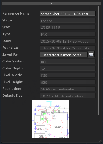 The Details and Preview panel, located below the File References panel, allows you to get information about the file reference in AutoCAD for Mac and information about the file on disk.