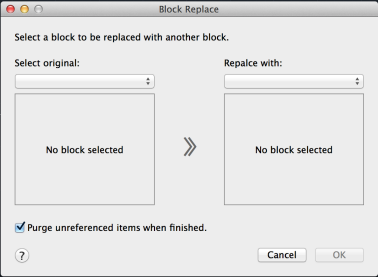 Select the block to be replaced from the Select Original drop-down menu. Then select the block to be replaced with from the Replace With drop-down menu and click OK.
