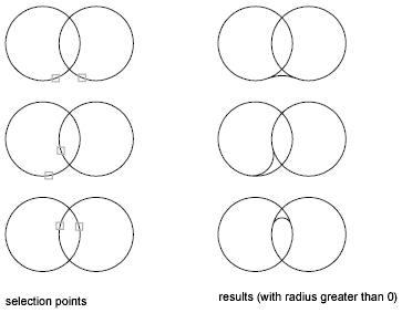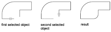 If you select lines, arcs, or polylines, their lengths adjust to accommodate the fillet arc. You can hold down Shift while selecting the objects to override the current fillet radius with a value of 0.