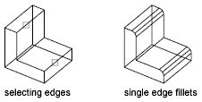 If you select three or more edges that converge at a vertex to form the corner of a box, FILLET computes a vertex blend that is part of a sphere if the three incident fillets have the same radii.