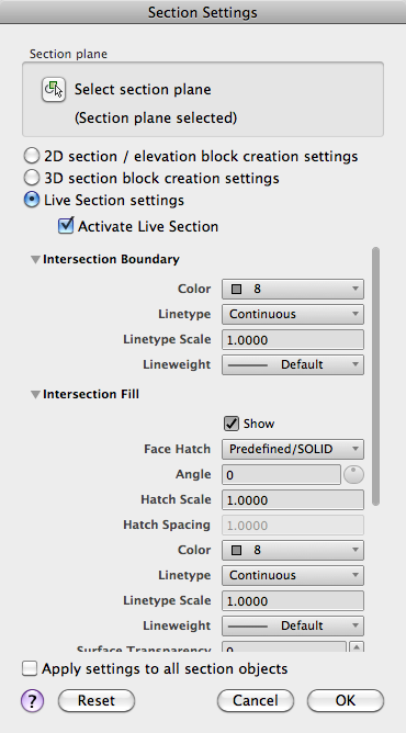 - Surface Transparency. Sets the percentage of transparency for the intersection fill. (Live Section only)