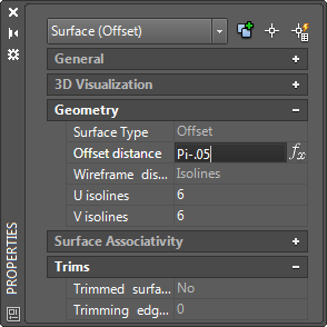 Dimensional constraints are user-defined expressions that are applied in the Properties palette for that surface.