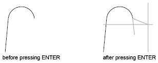 If the most recently drawn object is an arc, its endpoint defines the starting point of the line, and the line is drawn tangent to the arc.