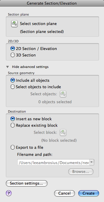 Inserts the generated section as a block in the current drawing.