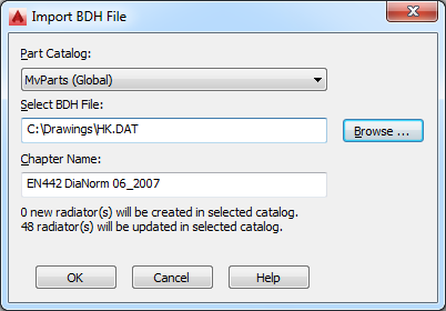 Radiator folder of the MvParts catalog under the specified folder name. AutoCAD MEP organizes parts according to the subchapter names specified in the BDH file and also updates existing radiators.