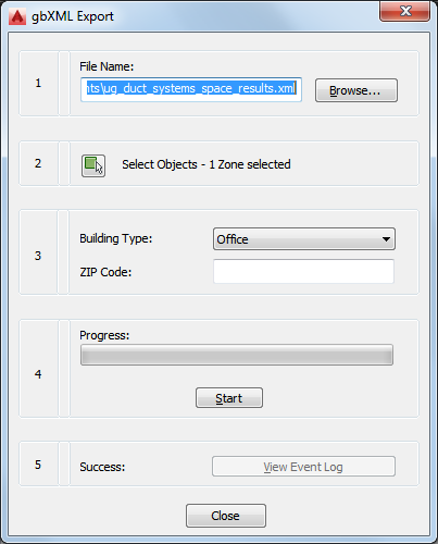 After you create spaces and group them into zones, you can export the information to a file in the Green Building XML (gbXML) format as follows.