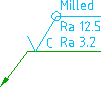 You can also specify surface texture requirements on a top view, using surface indication leaders.