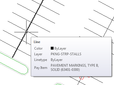 In the drawing, all parking lot stall lines are selected.