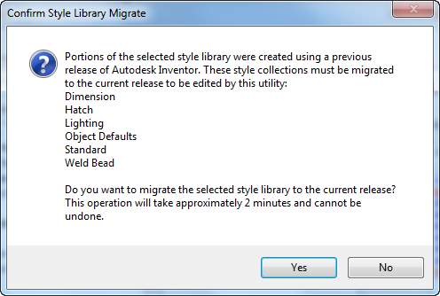 - Once migrated, you cannot use style libraries with older versions of Inventor.
