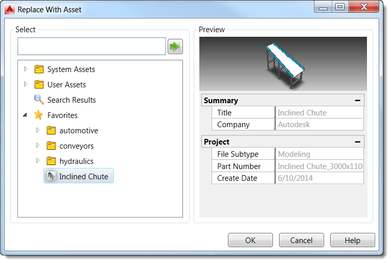 Replace automatically places the asset to match the position of the original object. If both the object and the asset have defined insertion points, the asset is placed by matching the two insertion points together. If no insertion points are defined, the asset is positioned by matching the center points together.
