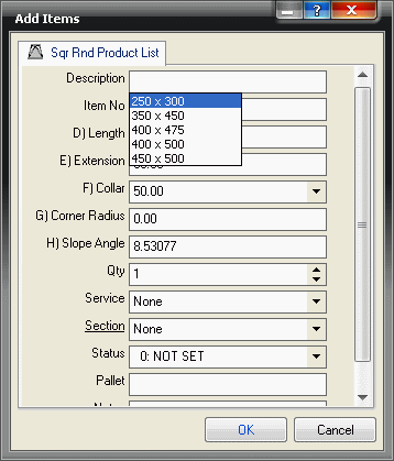 It is now possible to select the correct size of the item that correlates to the dimension you need, and add it to the job.