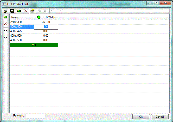 The first column of the Product List table is where you specify a descriptive name for the part being creating.