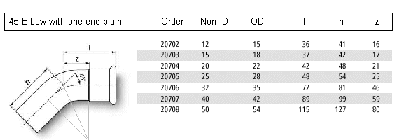 The data below is from the OEM's PDF catalog. The 2 Elbows belong to a Product Type that is joined by a crimped Socket and Spigot method.